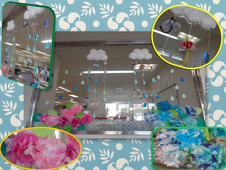 梅雨の「ジメジメ・イヤイヤ(>‗<)/~」な時期を、さわやかな色彩と遊び心でお迎えしております♪