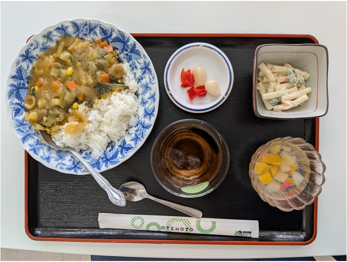 皆様、こんにちは。当院の管理栄養士が工夫を凝らした、具だくさんチキンカレーを中心とした献立をご紹介いたします。